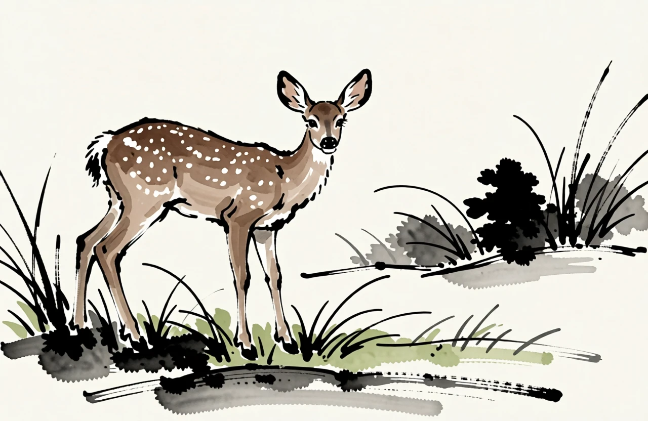 墨絵は、文字通り「墨の絵」を意味する日本の伝統的な墨彩画の芸術です。「墨」は黒墨、「絵」は絵画を指します。中国で発展し、禅僧によって日本に伝えられた東アジアの筆遣いに根ざしており、禅の哲学と美学に深く結びついています。実際には、墨絵は水で薄めた黒墨だけを用いて、和紙に深い黒から淡い灰色までの様々な濃淡を表現します。細部の写実性ではなく、最少の最も表現力豊かな筆跡で対象の本質や精神を捉えることに重点を置いています。本物の墨絵はシンプルさと即興性が特徴で、不必要な細部は省かれ、すべての筆触は意図的かつ生き生きとしており、深い観察と内なる調和を反映します。墨は和紙に染み込み、一度使うと修正できないため、画家は澄んだ心でひと筆の自信ある動作で描くことを目指し、それは禅の修行で培われる集中した存在感に似ています。